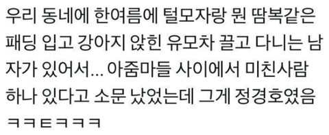 아줌마들 사이에 미친 사람이라고 소문났는데