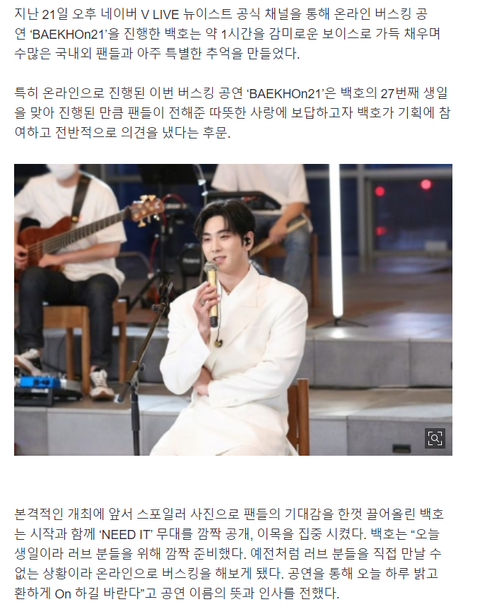 뉴이스트 백호, 생일 기념 온라인 버스킹 성공적 마무리..팬 사랑 듬뿍