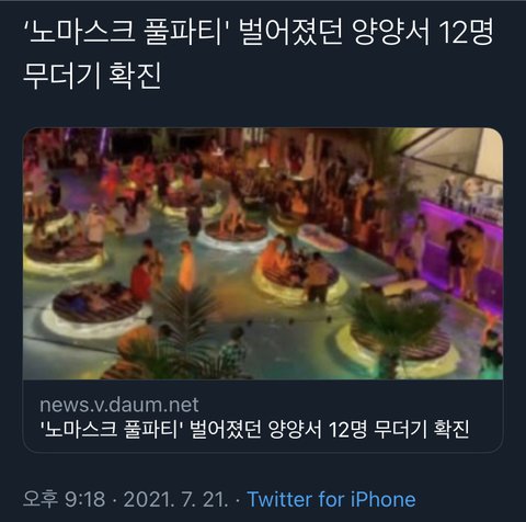 파티 규모에 비해서 12명이면 운도 좋네ㅋㅋ 정신 좀 차려라 제 발로 코로나 걸리고 싶어요ㅠㅠ 이러고 있네