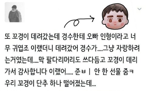 어떤 팬이 꼬경이 들고 팬싸인가 갔는데