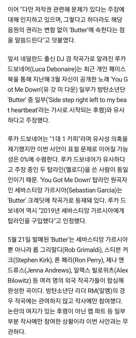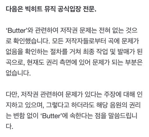 빅히트 뮤직 측 "방탄소년단 'Butter' 저작권 문제 전혀 없어"(공식)