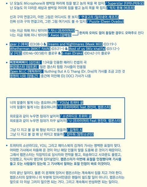 2. 저글에서 '멘사 출신 랩몬스터씨? 근데 이제 영문 한 줄 조차 떠올리지 못 하는 , IQ 측정도 컨닝해서 잰게 아닐까' 이부분은 표절과 관련 없는 인신공격일 뿐