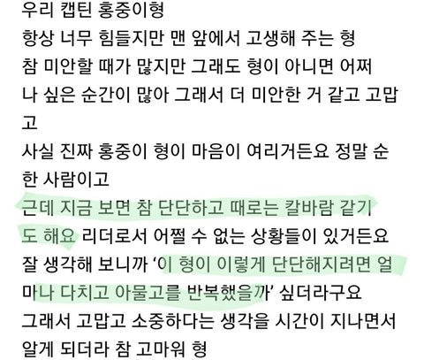 감정 추스리면서 이성적으로 냉정하게 판단하고 다른멤버들 이끄는 게 쉽지 않을텐데 멋지게 해내고있다 울 캡틴♥