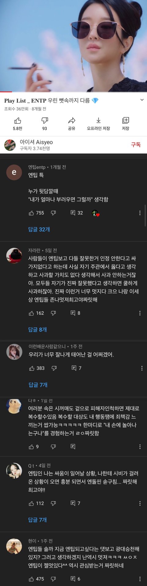 너 이런데다 댓 달고 감명받는 mbti과몰입 잼민이 같음