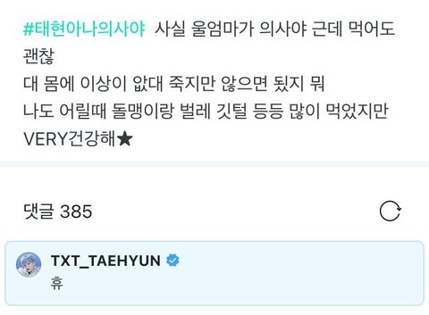 투모로우바이투게더 첫째막내 (막내가 두명이라서)투바투 태현 올해 20살이고중학생 때 등수가 전교 상위권이었던 멤버임.