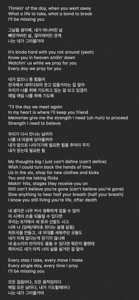 1. bbc에서 방탄이 커버하게될 “I'll be missing you“는 아직 예민한 주제(sensitive topic)인 사건이 바탕이 되는 노래임