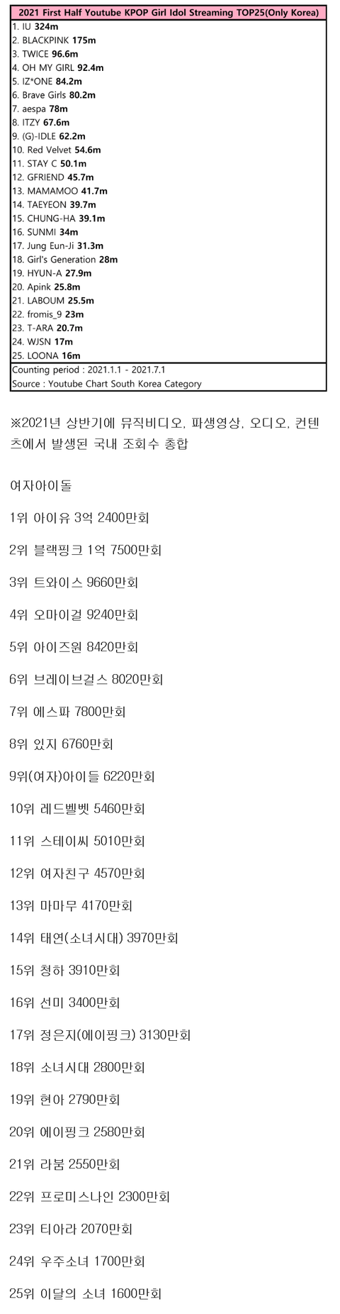 아이유 블랙핑크 트와이스 레드벨벳 프로미스나인 아이즈원 소녀시대 정은지 태연 선미 티아라 에스파 오마이걸 스테이씨 있지 브레이브걸스마마무