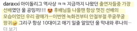 최고 선배님 나오시니까 안절부절 쭈굴쭈굴ㅋㅋㅋㅋㅋㅋㅋㅋ 너무 귀엽다 광매❤️ ㄷㄹ님이 귀여워해주시는 것도 좋다,,❤️