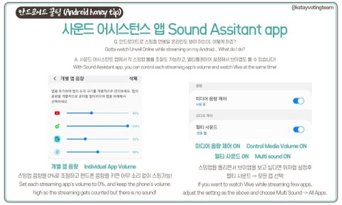 안드로이드는 사운드어시스턴트(플레이스토어 혹은 갤럭시스토어에서 다운)로 동시 스밍 및 뮤비 같이 보기 가능!!