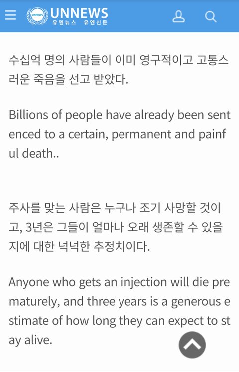 3년 내 사망은 아니더라도 짚고 가야 할 점은 있음. 나라가 백신을 강요한다는 거.. 말이 의무화지, 사실상 강제 접종이고 원하지도 않는데 맞아야 함. 그리고 마치 백신을 안 맞아서 코로나에 걸렸다는 듯한 뉴스를 퍼트리면서 의도적으로 백신 접종을 강요함. 물론 전염병이 도니 백신 접종은 하는 게 좋겠지. 근데 팩트는 애초에 코로나는 생존율 98퍼센트라는 거. 그리고 그것보다 더 중요한 팩트는 모든 백신은 미접종자보다 발병률이 높음. 이건 증거도 있으니 찾아보시길.