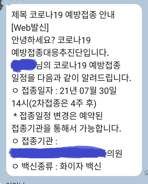 그냥 이렇게 백신 종류 바뀌었다는 말도 없이 문자만 띡 보내는 게 제대로 된 공지인가?