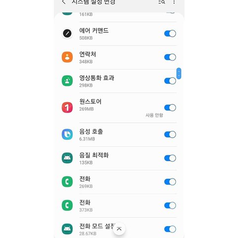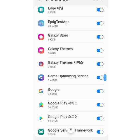 현재 초기화후 네 다섯개 어플만