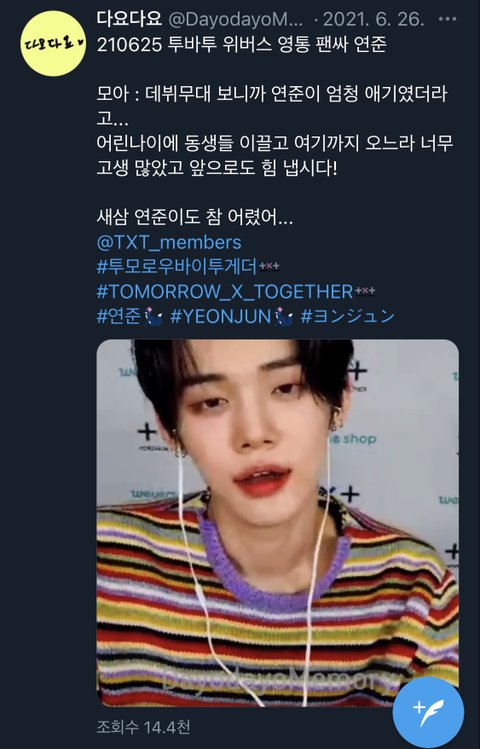 다요님 계정 들어가서 간만에 쭈욱 보는데 그치.. 연준이 어렸지 이게 맏형이라서 다른 멤버들보다 나이 많으니깐 성숙해보이는데 21살이면 진짜 어린거지 나 21살에 연준이 같이 저런 마인드와 포용력과 배려심 1도 없었는데 어리기도 어렸고 아직 타인을 존중하기 보단 내가 중요했던 나이여서.. 우리애가 너무 빨리 철든게 좀 맘아프네 어리광 부려도 될 나이였는데