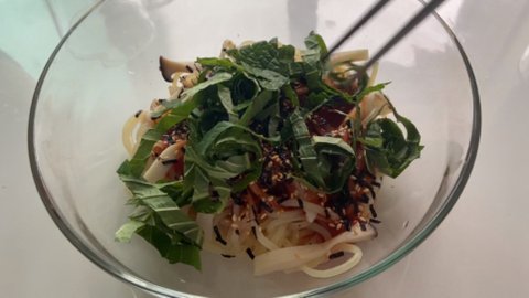 삶은 계란에 오이 채썰어 올리고 식초 왕창 넣어먹으면