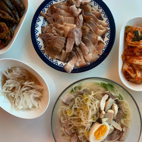 앞다리살 사서 수육 삶고, 고기국수도 만들었어요!