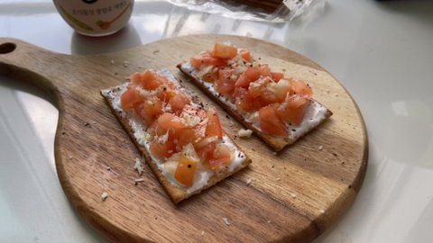 크래커에 사워크림, 토마토살사 올려서 뚝딱 만들어먹었어요
