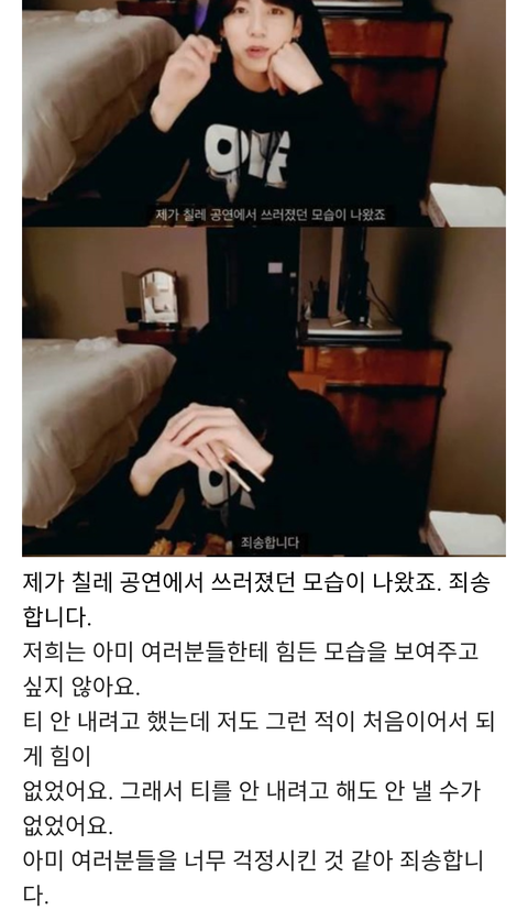 사진첩 뒤적거리다가 예전 인터뷰랑 트윗들 봄 얼마나 열심히 진심으로 여기까지 왔는지 아는데 애들이 변해서도 내가 변해서도 아니고 고작 소속사 때문에 포기한다는게 말이 됌? 그니까 빅히트 조카 끝장을 볼거임