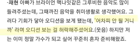 아버지가 어차피 SM 오디션 봐도 탈락할거니까