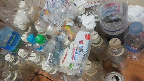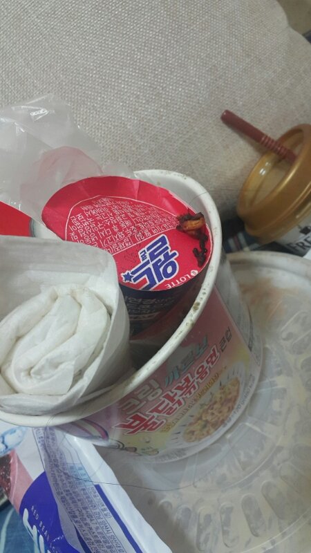 온갖 쓰레기에 널부러져있는 옷과 수건들.
