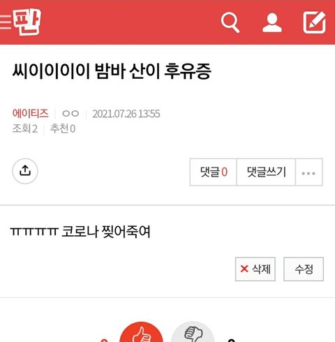 안그래도 짜증나는데 욕도 안썼구만 왜 자꾸 글 지워 콱그냥 코로나 퍽퍽 후유증 퍽퍽