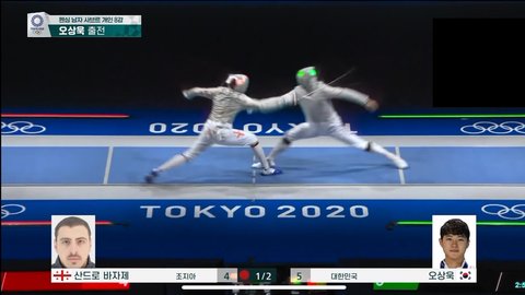 1. 오상욱 선수가 공격해서 한 점을 따냄 (4:5)