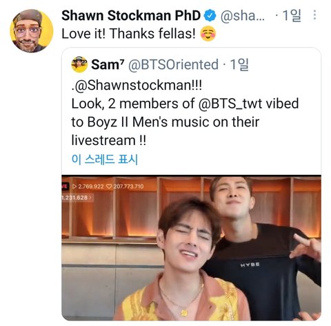 태앱에서 end of the road 부른걸 알고 고맙다 하셨는데