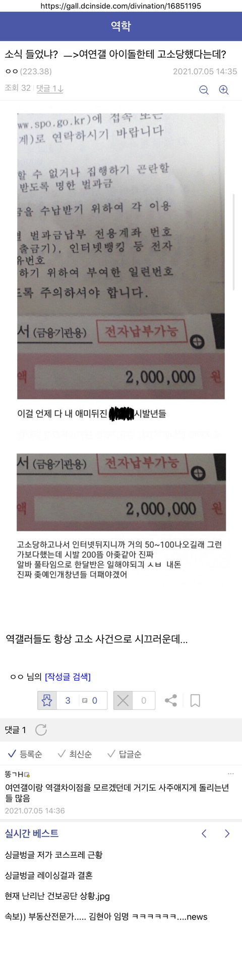 고소당해서 벌금 200만원 나온거나 빨리 내라