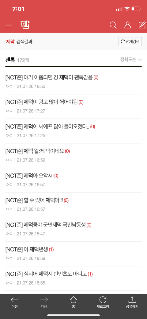 팬톡에서 제덕씨 게시물 172개 검색 되는데 다 엔시티즌 팬톡임ㅋㅋ