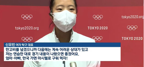 엄마, 아빠 한국 가면 마시멜로 구워먹자는 신유빈 ㅋㅋㅋ