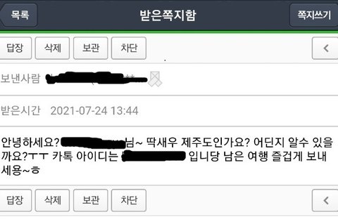 혼자 여행중이었다가 네이버 여행카페에 글을 올렸는데 쪽지로