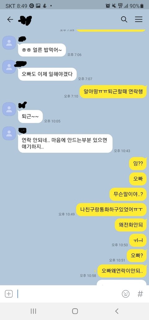 갑자기 제가 40분정도 연락이 이렇게 안되었는데