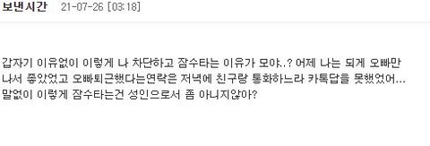 이렇게 왔는데 평소엔 무시하던 성격인데 그떈 왠지 혼자술도먹고 용기?가나서 ?궁금해서