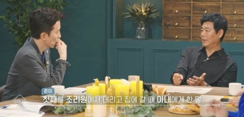 성동일이 첫째 준이를 조리원에서 데리고 집에 갈 때 아내에게