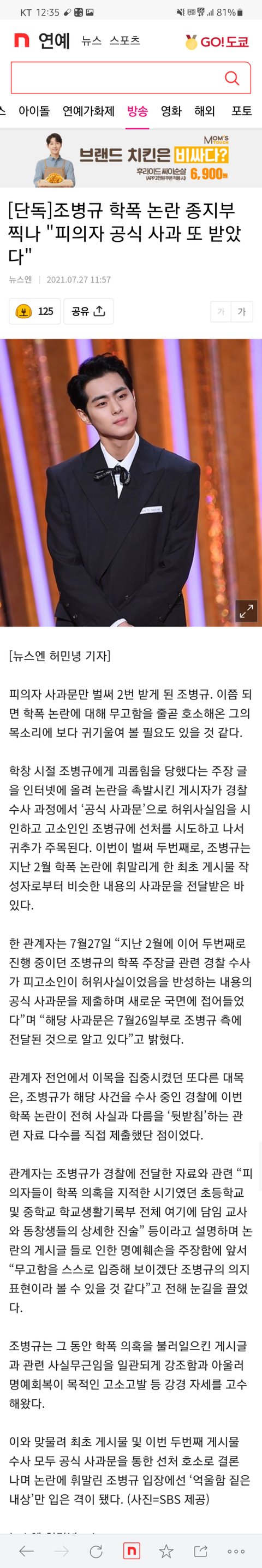 (기사) 조병규 학폭 피의자에 공식사과 2번 받음