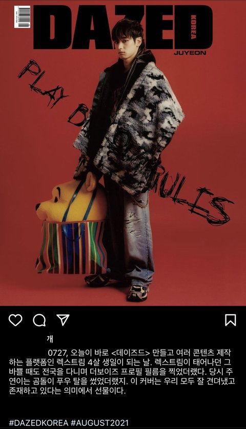 0727, 오늘이 바로 <데이즈드> 만들고 여러 콘텐츠 제작하는 플랫폼인 렉스트림 4살 생일이 되는 날. 렉스트림이 태어나던 그 바쁠 때도 전국을 다니며 더보이즈 프로필 필름을 찍었더랬다. 당시 주연이는 곰돌이 푸우 탈을 썼었더랬지. 이 커버는 우리 모두 잘 견뎌냈고 존재하고 있다는 의미에서 선물이다.