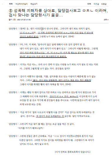검사 지금 비위 맞추느냐고 ' 야, 이 미친년아! 이거 할 필요도 없는데 네가 검사