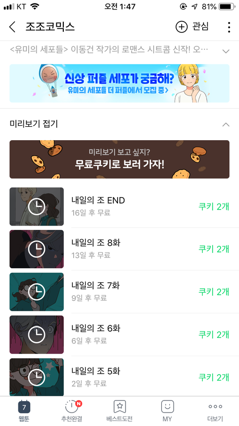 엥 이동건 작가 신작 내일의조 네웹 봐본ㅅㄹ 들어와바