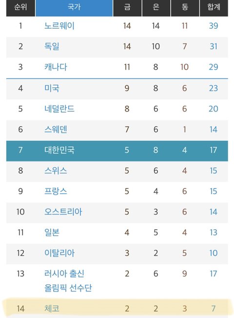 체코가 따낸 모든 금메달을 휩쓸어서