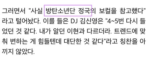 큐티현이님이 신곡녹음 할때 정국이 보컬 참고 했대