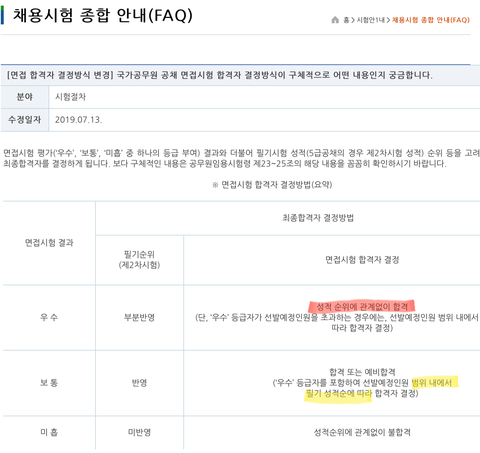 백번 양보해서, 그래 그건 그렇다치자. 면접에서 제 동생은 2등을 했습니다. 상식적으로 보면 필기3등 , 면접 2등 = 3등 안에 들겠죠.