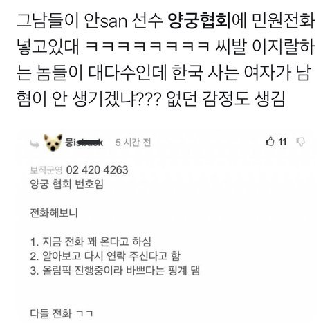 이건 전화번호 ㅜㅜ 양궁협회도 고생하겠다 싶긴 하다