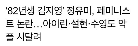 ++ 난 분명 멀쩡한 남자들은 안 싫어한다 함~ 허구한날 방구석에서 커뮤 왔다갔다 거리면서 별것도 아닌걸로 발작하는 일부^^ 남성들 얘기한거임 이거에 부들거리면 본인이 그 일부인거 인증하는거지 ㅋㅋㅋㅋㅋㅋㅋ