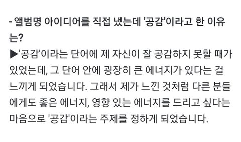 공감이라고 앨범 타이틀 정한 것도 너무 딱이다 ㅠㅠ