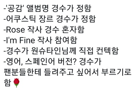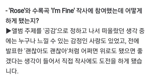 난 가사 때문인지 제일 귀에 들어 오고 애착이 가는 게 Rose랑 I'm fine이었는데