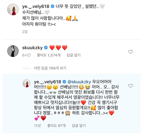수지가 아린이 화보 올라온 인스타 게시물 좋아요 누르고