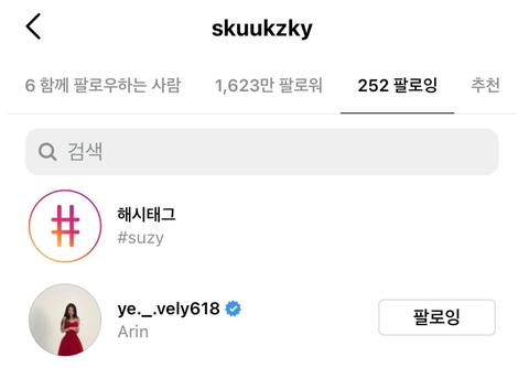 새벽에 수지가 아린이 인스타도 팔로우하고