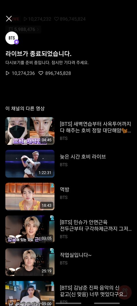브이앱 개편되면서 들낙하는 중복시청 집계 안된대 새벽 1시에 순수 시청자 1000만이면 조카 대단한거