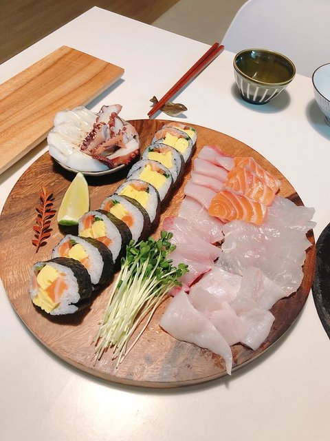 직접만든 연어마끼와 회는 포장한거 담은거 ㅎㅎ