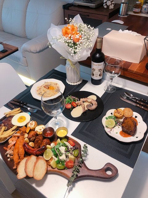 요리가 취미인 남자가 최근에 직접 만든 요리입니다.