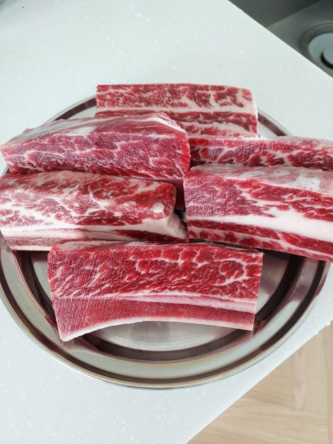 마트에서 우대갈비를 세일 하더라고요. 에프에 휘리릭! 색깔 영롱한거 보이죠..